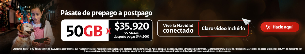 Te damos la bienvenida a prepago Claro lleva paquete todo incluido 7 días con 50% de descuento. Aplica para líneas nuevas y portaciones